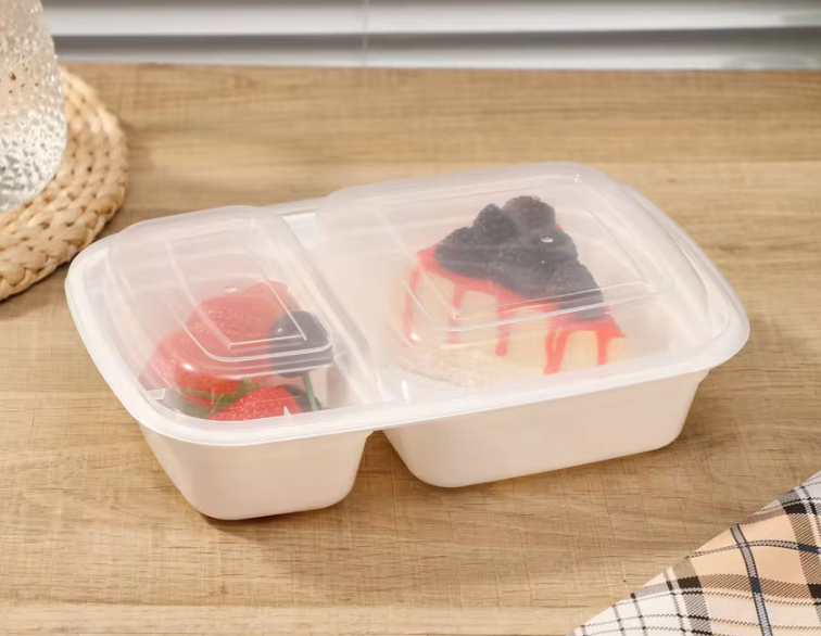 Organize and serve meals efficiently with our Disposable 2 Compartment Food Container with Lid. Perfect for portion control and meal separation, this container is made from eco-friendly materials, offering a sustainable alternative to traditional plastic. The secure lid ensures freshness and spill prevention, making it ideal for takeout, delivery, and meal prep. Its sturdy construction provides durability for a variety of foods, making it an excellent choice for restaurants, cafes, and catering services.