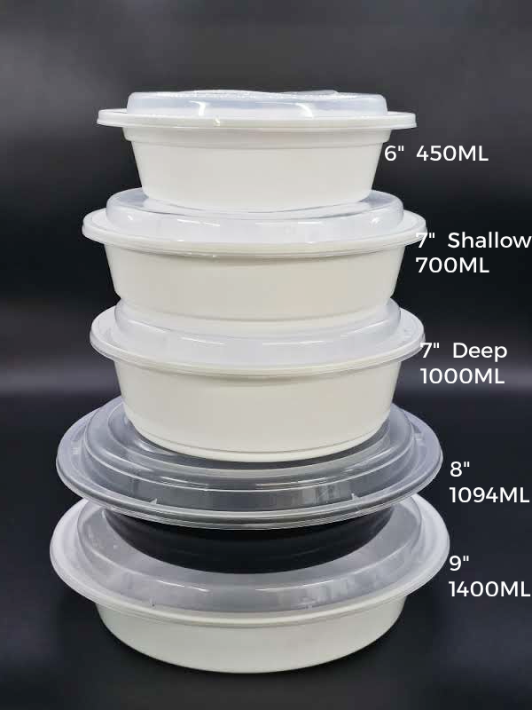 Ideal for restaurants, catering events, and takeout services, these round bowls provide a practical and secure solution for serving small to medium-sized food portions.